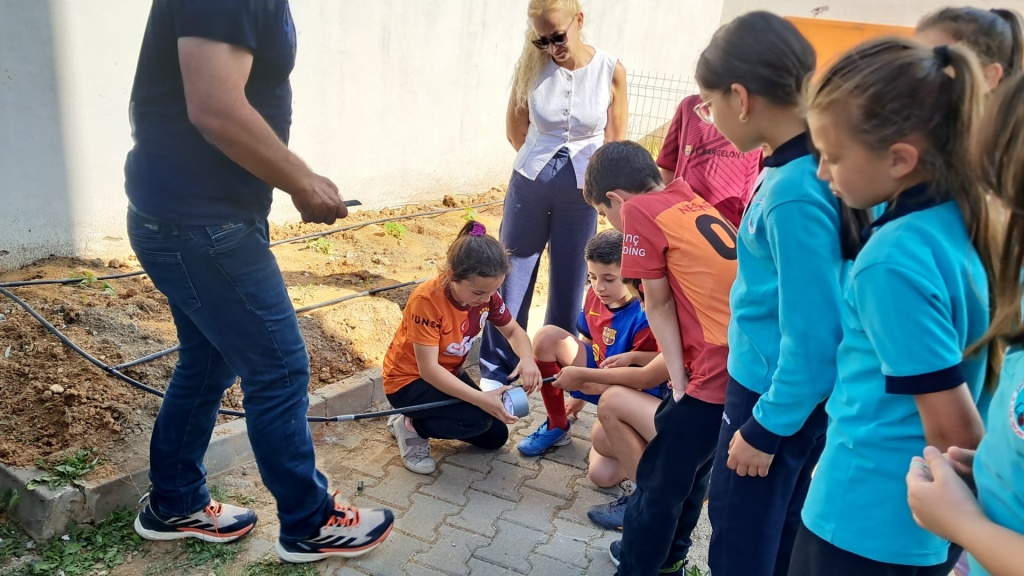Uygulama, okulun bahçesinde oluşturulan özel alanda gerçekleştirildi. 4/A sınıfı öğrencileri, çatılardan ve açık alanlardan toplanan yağmur suyunun biriktirilerek bitkisel üretimde yeniden kullanılmasını sağlayan sistemi hem tasarladı hem de kurulum sürecinde aktif rol aldı. Kurulan damlama sulama sistemi, hem su tasarrufu sağladı hem de doğal kaynakların verimli kullanımına dikkat çekti.